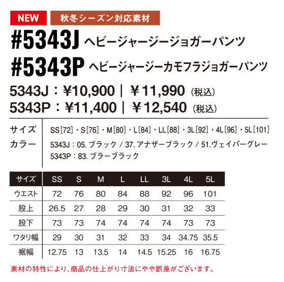 アイズフロンティア 5343J ヘビージャージジョガーパンツ 秋冬対応 2025AW