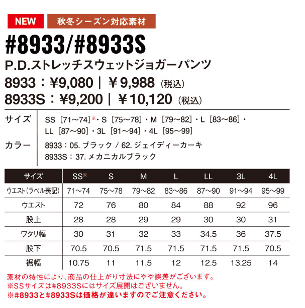 相互ユニフォーム トップページ > お勧め商品 > アイズフロンティア 8933S 生産数量限定品 P.D.ストレッチスウェットジョガーパンツ 2025秋冬