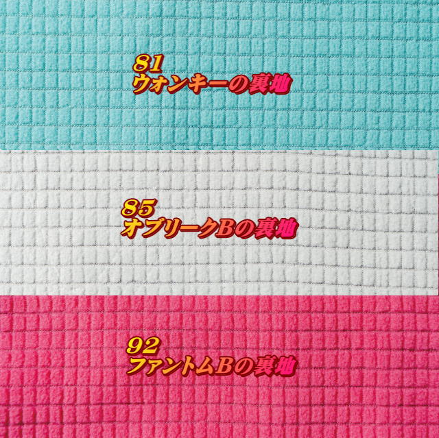 | 素材特徴 | 表素材表面にポリウレタンコーティングを施しラグジュアリーなルックスを表現。85番色・92番色はマットプリントを施し上質感をアップ。高級感あふれるスタイリング |