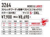 相互ユニフォーム トップページ > お勧め商品 > バートル 3264 ストレッチフーディ防寒ベスト ユニセックス 2025秋冬