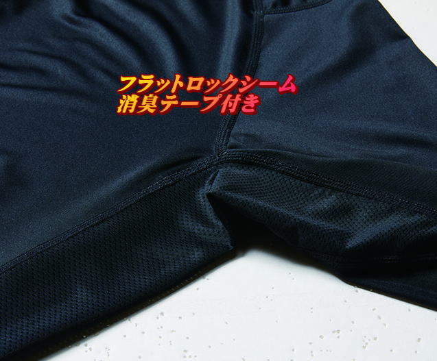 | 素材 | 素材:スーパーストレッチ(伸長率40%以上)吸水速乾加工 消臭テープ、UVカット(UPF45)混率:表ポリエステル90%・ポリウレタン10% メッシュ:ポリエステル95%・ポリウレタン5% |