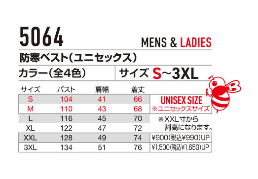 バートル 5064 防寒ベスト ユニセックス 2025秋冬