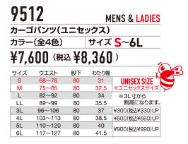 9512 バートル カーゴパンツ ユニセックス 2026SS~