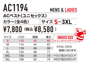 相互ユニフォーム トップページ > バートル > AC1194 バートル フード付きベスト空調服 2026SS フルハーネス対応